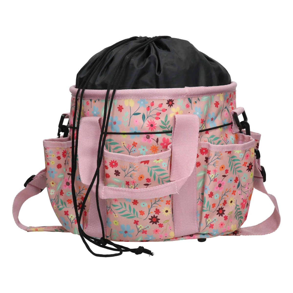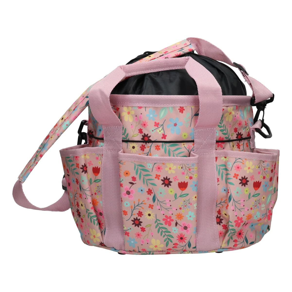 - uitgerust met twee stevige handvaten, een afneembare schouderband en een elastisch koord rondom de buitenkant