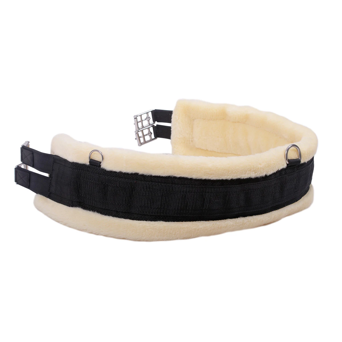 - voorzien van drie bevestigingsringen, één in de midden voor hulpteugels en twee ringen aan de zijkant