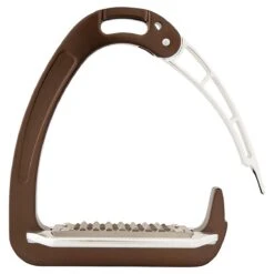 - het gewicht van de ruiter zorgt ervoor dat de beugel opent bij een val, zo blijft de voet niet in de beugel hangen