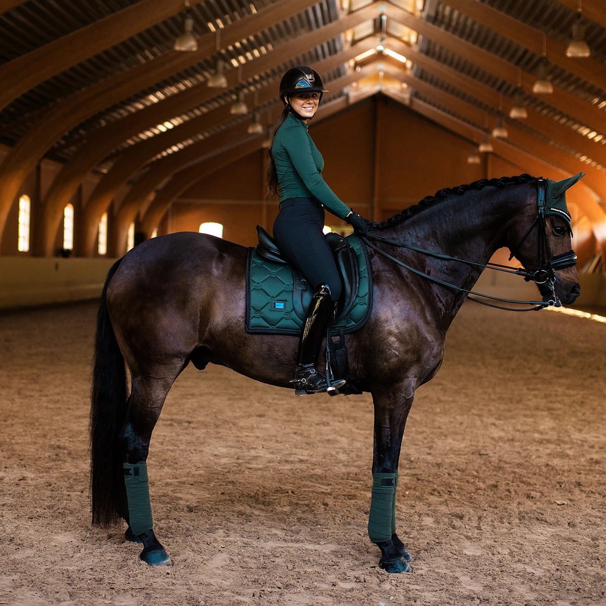 - gedecoreerd met stijlvolle zwarte details en een Equestrian Stockholm badge