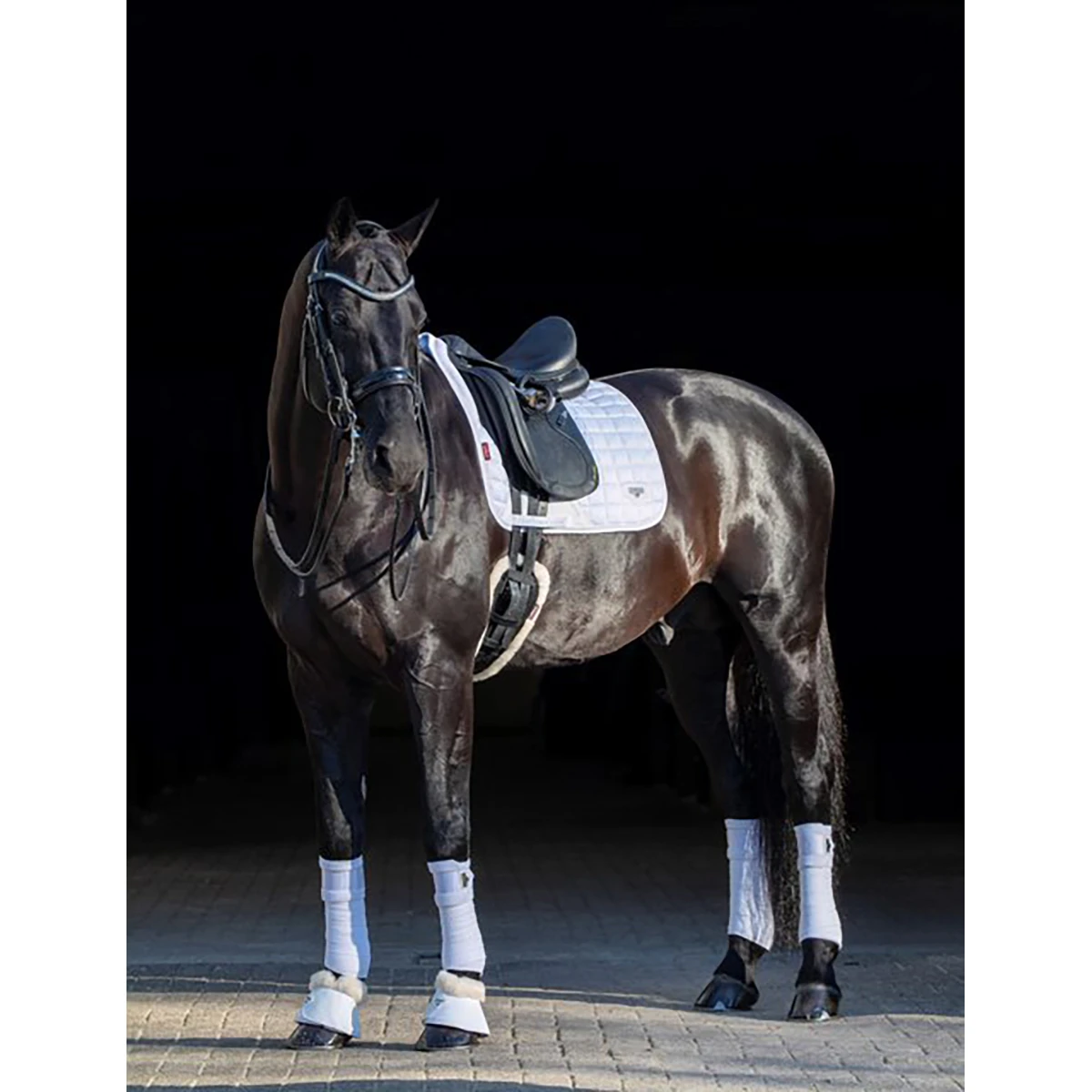 Op alle zadeldekjes wordt een voorwas aanbevolen om de kleurechtheid te garanderen en om de stof zachter en flexibeler te maken voor paarden met een gevoelige huid. Machinewasbaar op 30 graden en sneldrogend. Sluit alle klittenbandsluitingen voor het wassen.